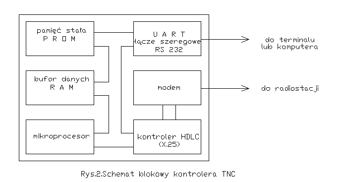 Kontrolery te znane są pod nazwą TNC (ang. Terminal Node Controler). Uproszczony schemat
