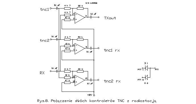 na nadawanie obydwu kontrolerów TNC. Trzeci ze wzmacniaczy operacyjnych sumuje
