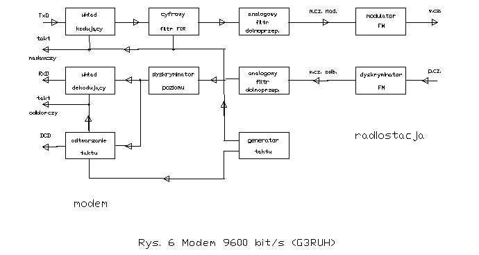 Modem G3RUH generuje cyfrowo sygnał m.cz., tak że możliwa jest