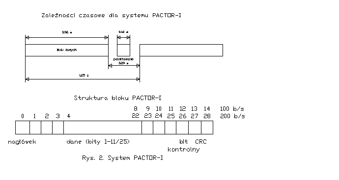 szybkości transmisji (w systemie PACTOR przyjęto szybkości 100 i 200 bit/s) długość
