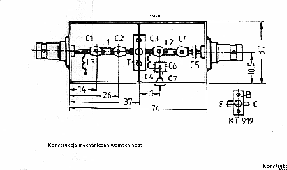 wzmacniacza mocy. Obwody selektywne wykonane są w technice drukowanych linii paskowych.