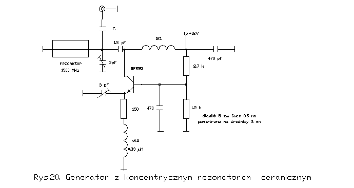 końcówka stanowi indukcyjność obwodu rezonansowego. Punkt pracy tranzystora ustalony jest