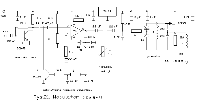 Nadajnik składa się z generatora samowzbudnego modulowanego