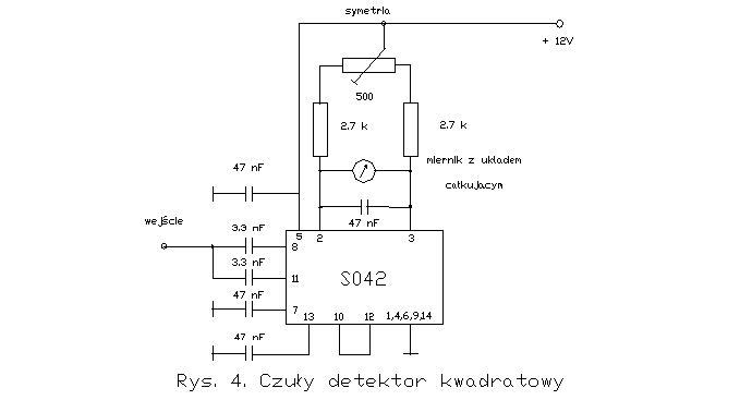 symetrii. Sygnał wyjściowy detektora może być oczywiście doprowadzony do wejścia