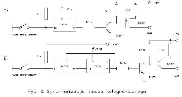 Sygnał wyjściowy klucza telegraficznego synchronizowany jest za