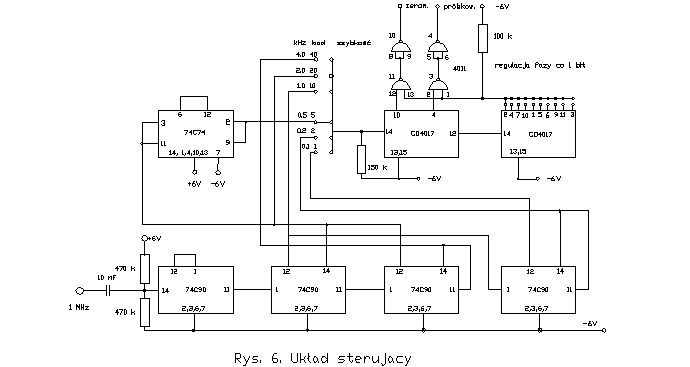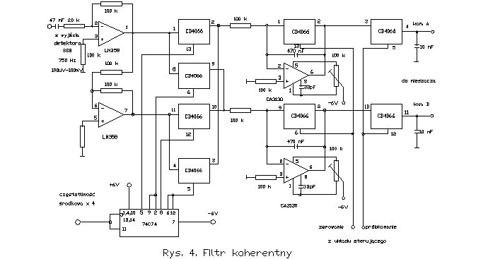 obwody scalone: 2 x LM358, 2 x CA3130, 3 x CD4066, 3 x 74C74, 4 x 74C90, CD4011,