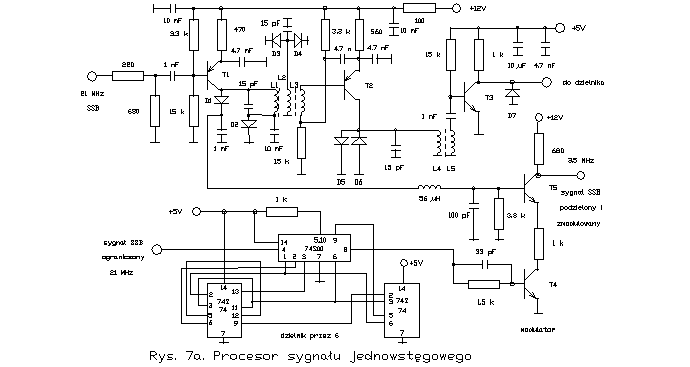 D5 i D6 i wzmocnieniu za pomocą tranzystora T3 sygnał jednowstęgowy poddany jest